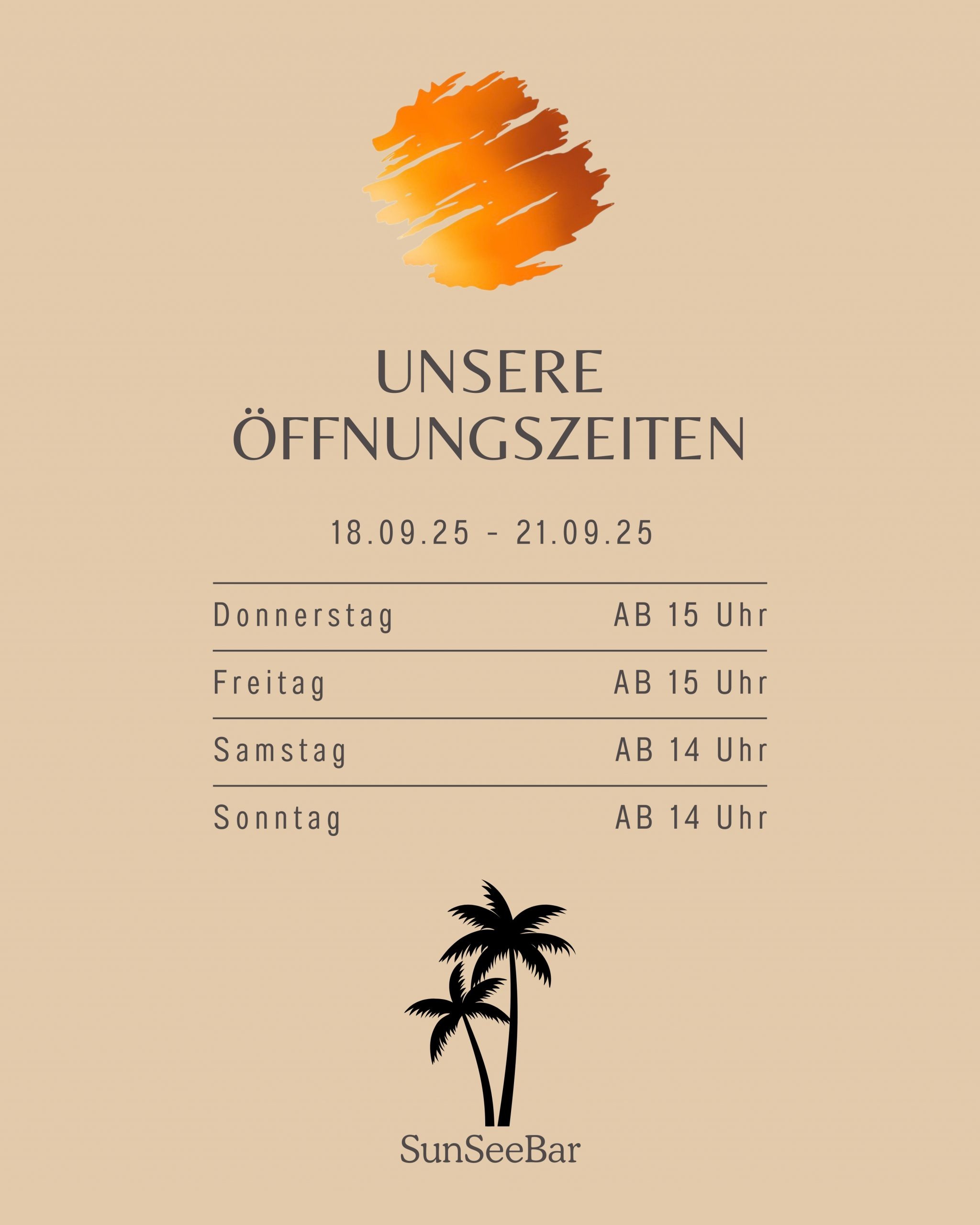 Chillige Beats, gutes Essen und ein Platz direkt am Wasser – in der SunSeeBar wird jeder Tag ein bisschen wie Urlaub. Komm vorbei, gönn dir was und fühl dich einfach wohl!